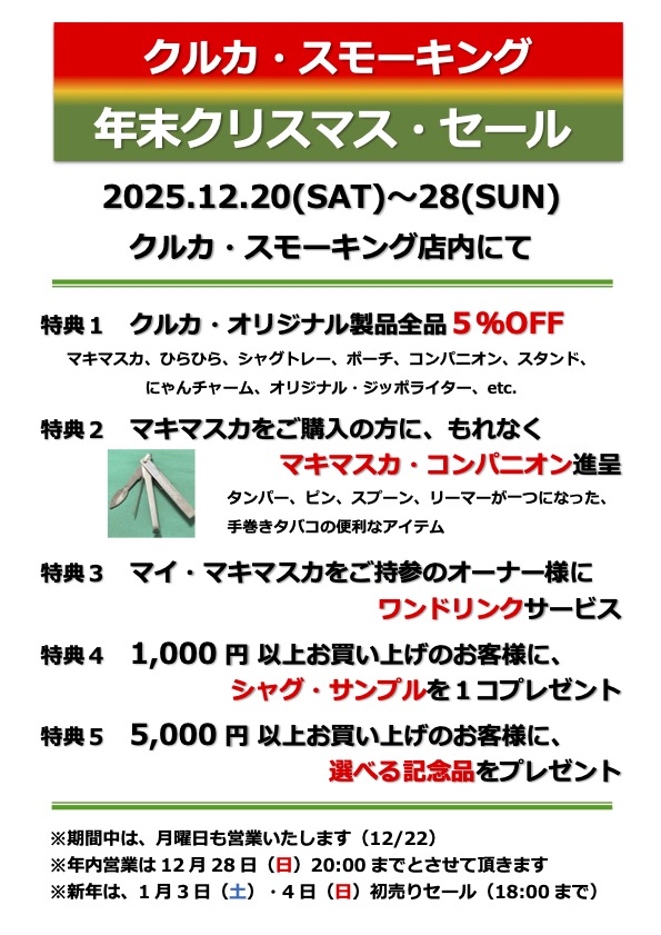 年末年始店舗休業中(12月29日〜1月2日)も有効です