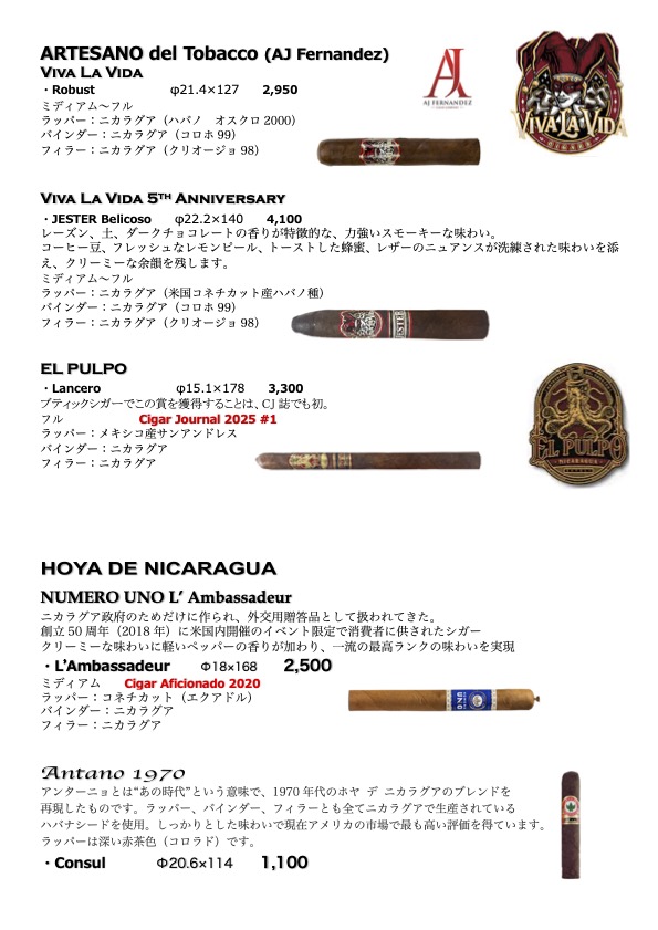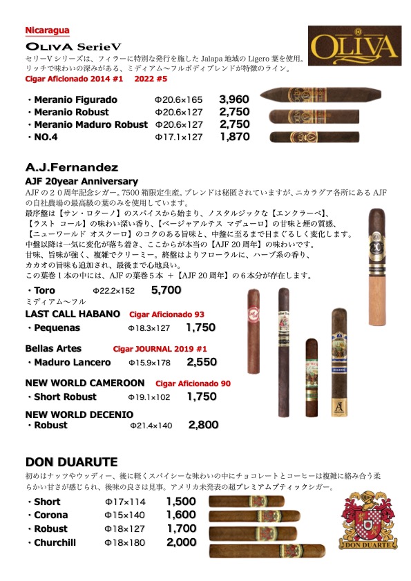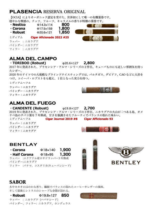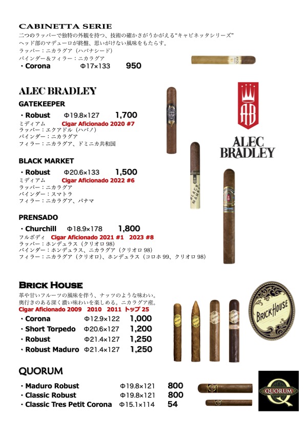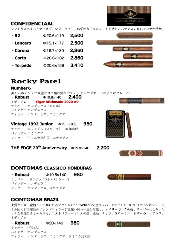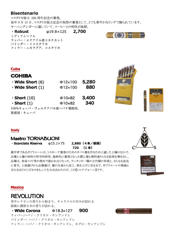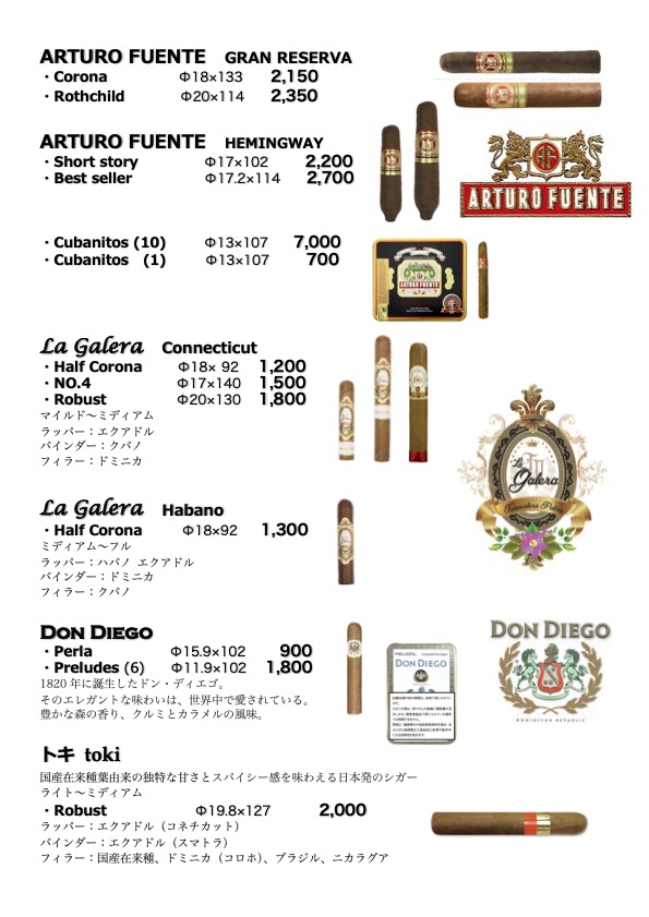 シガー・メニュー